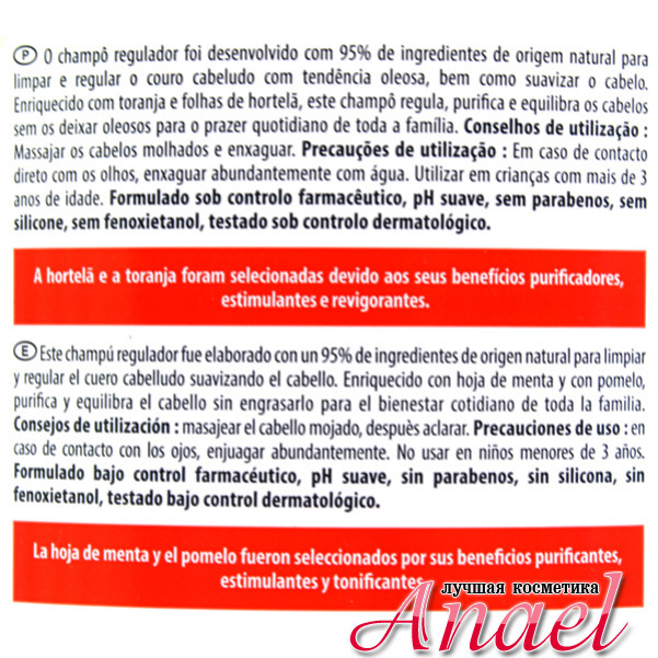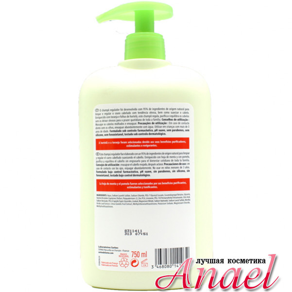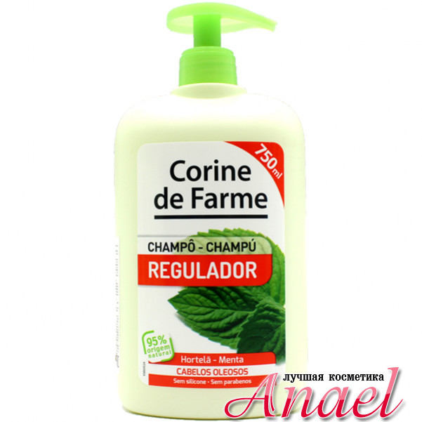 Шампунь регулирующий с мятой для жирных волос Corine de Farme Champo Regulador Menta Cabelos Oleosos, на 95 % состоящий из натуральных ингредиентов, качественно промывает волосы и кожу головы, освежая и успокаивая ее, и естественным путем снижает выработку кожного жира. Разработанная под фармацевтическим контролем, прошедшая дерматологический контроль формула без парабенов, силикона, феноксиэтанола, с мягким уровнем pH, обеспечивает деликатное очищение.