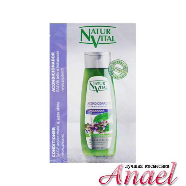 Кондиционер с экстрактом шалфея для волос и чувствительной кожи головы Natur Vital Conditioner Sage Moisturises & Adds Shine Sensitive, благодаря комплексу растительных экстрактов и масел, помогает моментально снять дискомфортные ощущения стянутости и зуда скальпа после мытья головы, удаляет остатки очищающих средств с волос и кожи. Кондиционер успокаивает реактивную кожу головы, смягчает и увлажняет ее, избавляет от сухости. Кондиционер придает волосам здоровое сияние, эластичность, облегчает расчесывание и укладку, сохраняет высокий уровень естественной влаги по всей длине волос, оберегая их от ломкости и расслаивания. Формула без искусственных красителей, PEG, силиконов, парабенов, консервантов и минеральных масел обеспечивает гипоаллергенность и идеальную переносимость кондиционера самой чувствительной кожей.