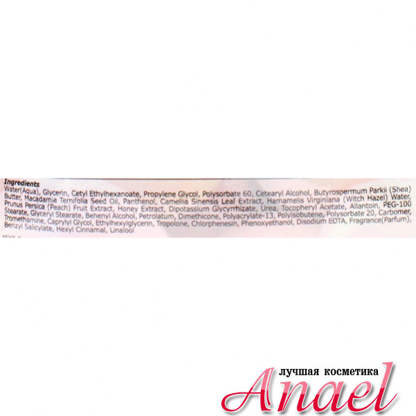 - Butyrospermum Parkii (Shea Butter) - масло ши, получаемое из плодов дерева ши, иначе называемого карите. Масло обладает сильными регенерирующими свойствами, активизирует синтез коллагена и возвращает коже упругость, быстро впитывается и усиливает барьерные свойства кожи, предохраняя ее от потери влаги. Масло эффективно смягчает кожу, уменьшает глубину морщинок, избавляет от чувства стянутости, предотвращает появление растяжек, избавляет от отечностей, синяков и морщинок в области вокруг глаз. Предохраняет кожу от обморожения и обветривания, облегчает зуд при укусах насекомых. Масло ши восстанавливает кератиновый слой клеток, придавая упругость и эластичность ногтям и волосам, укрепляет, питает и увлажняет волосы, придает им блеск.